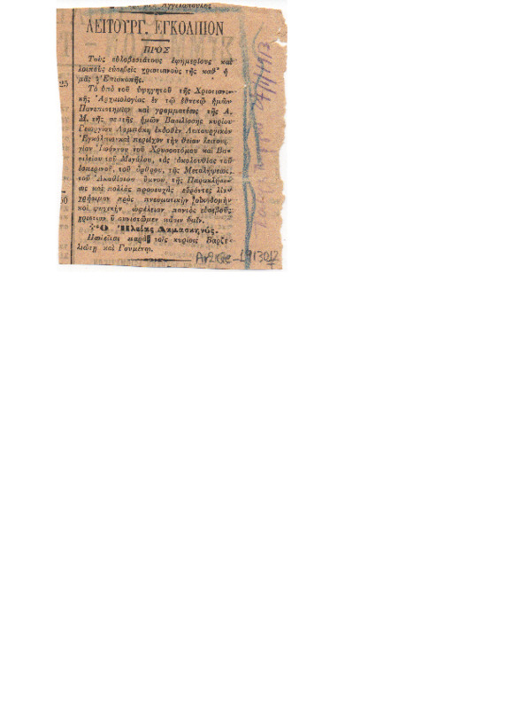 Θρησκεία και ΣτρατόςΗ Αμφίεσις των Ιερέων όταν είναι εις τον στρατόν Α' το καλυμμάυχιον Β' το επανεκαλύμαυχον Γ' το φαιλόνιον Αθήναι