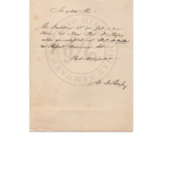 H επιστολή ενημερώνει τον παραλήπτη ότι η διατριβή του, γραμμένη στα ελληνικά, δεν έγινε δεκτή και του επιστρέφονται τα έγγραφα και τα χρήματα που είχε στείλει.