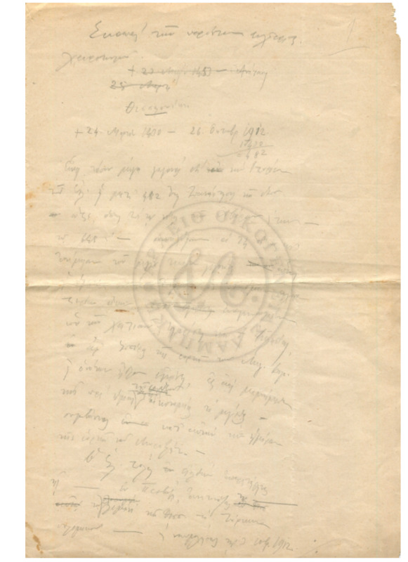 Περιέχει κολλημένο απόκομμα εφημερίδας επάνω στο δελτάριο με άρθρο του Λουδοβίκου Βύρχνερ "Η Σπουδαιότης των Ελληνικών Συνόρων"