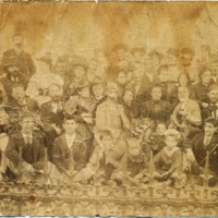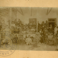 Ομαδική μικτού δημοτικού σχολείου. Στην φωτογραφία βρίσκεται ο Γεώργιος Λαμπάκης με την σύζυγό του Ευθαλία. (Τελευταία σειρά από το κέντρο λίγο πιο αριστερά)