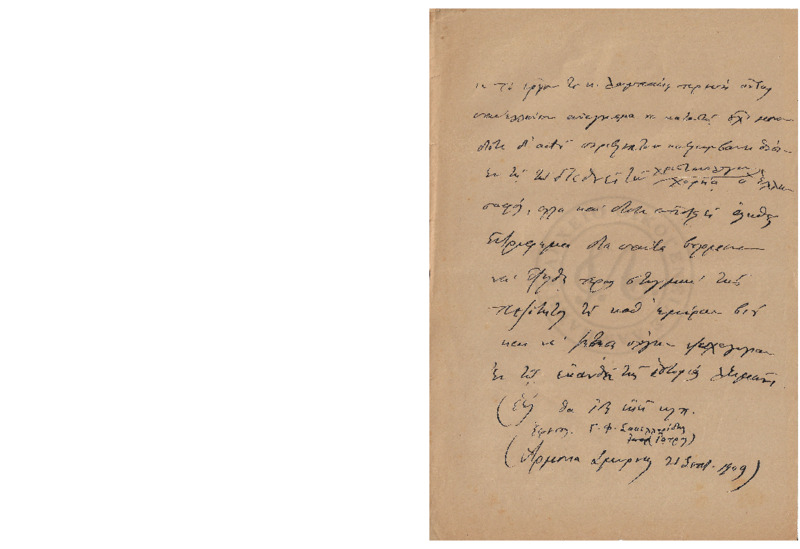 Αντίγραφο σχολίου για το έργο του Γεωργίου Λαμπάκη στην "Αρμονία Σμύρνης" από τον Γ.Φ. Σακελλαρίδη,