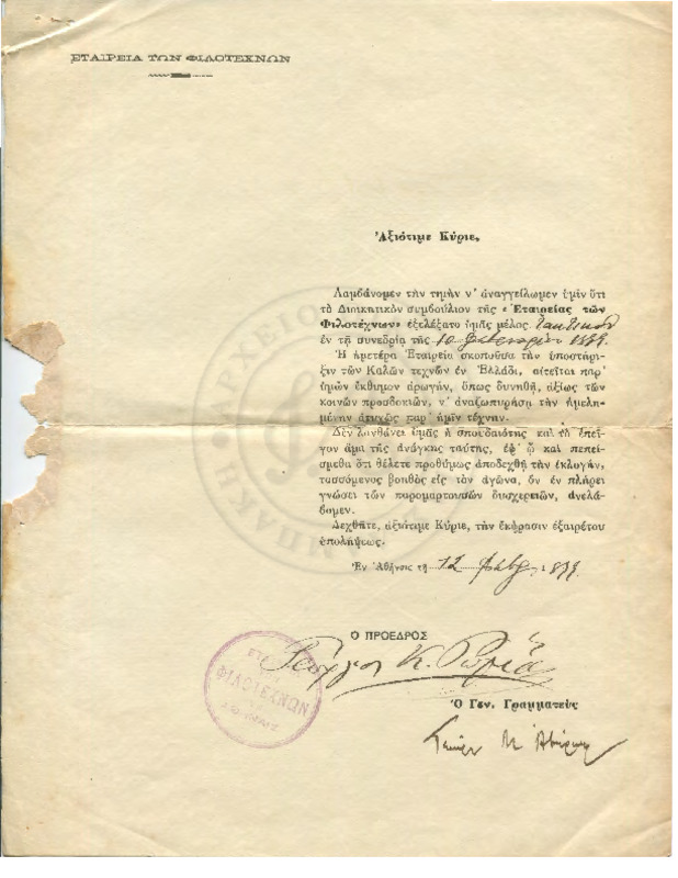 Προσχέδιο ενημερωτικής επιστολής προς την Βασίλισσα Όλγα για την πορεία του ταξιδιού του και την έκβαση των εργασιών. Ξεκινά με ευχές για την ονομαστική γιορτή της βασίλισσας Όλγας.