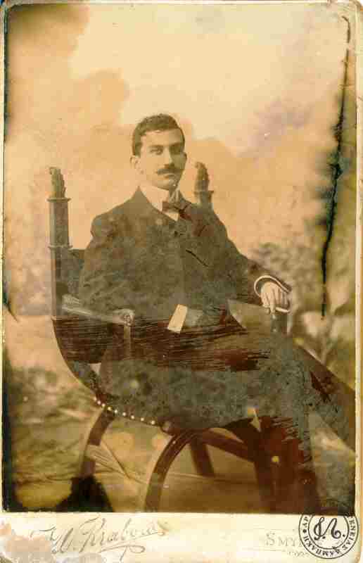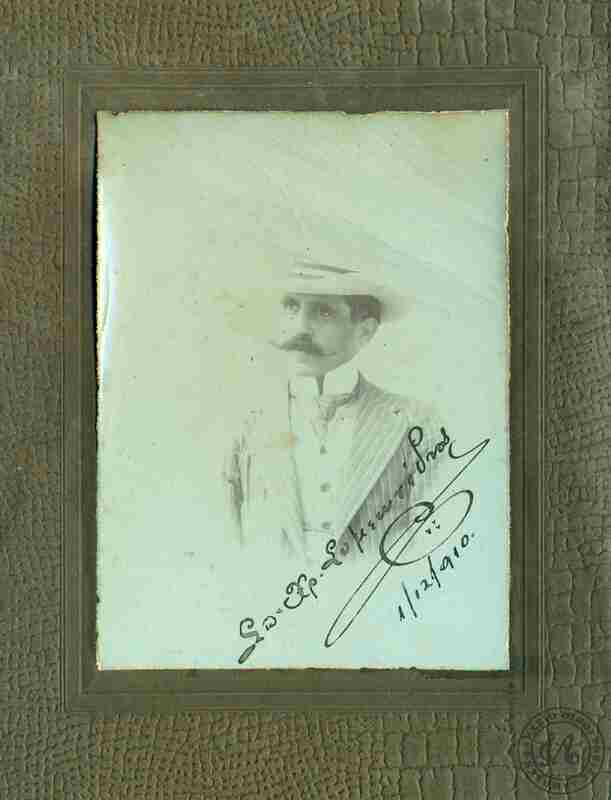 “ Εφωτογραφήθην 04 Αυγούστου 1901 -Το αγαπητώ μου και περισπούδαστω παλαιώ συμμαθητή ….. τω γραμματευ του ιδιαιτερου γραφείου της Α. Μ Βασιλίσσης της Ελλαδος σε …. ελληνική καρδιάς Διευθυντού του Χριστιανικού Αρχαιολογικού Μουσείου και υφηγητή της…