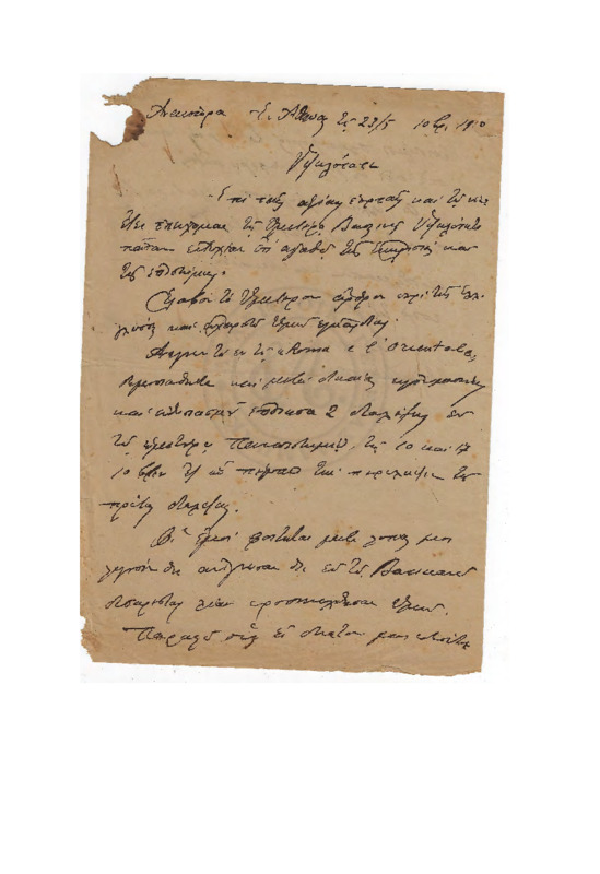 Προσχέδιο επιστολής με αναφορά στην διεκδίκηση της έδρας της Βυζαντινής Τέχνης, κρίσεις επί του έργου του στην εφημερίδα της Κυβερνήσεως (1912) αλλά και άρθρο απάτη παρόμοιο με το δικό του περί Άρτας.