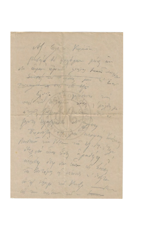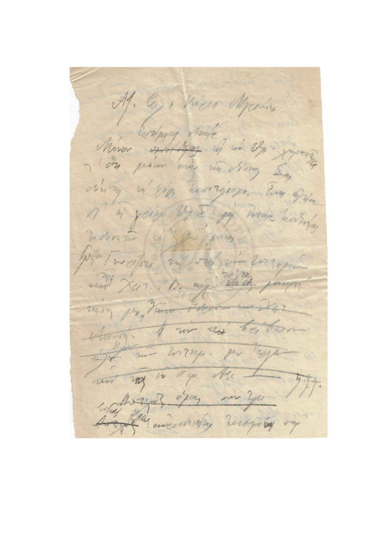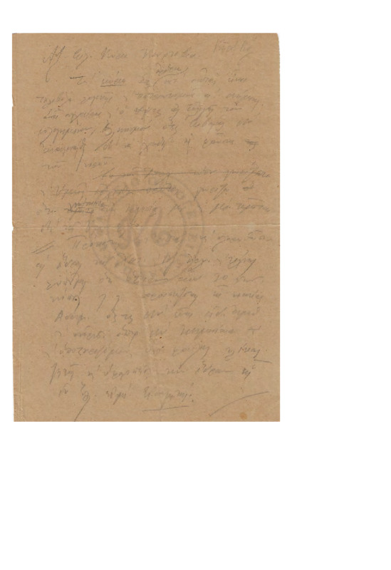 Προσχέδιο επιστολής προς τον Διευθυντή της εφημερίδας "Κήρυξ", αναφερόμενος στην στήριξη του Αδαμαντίου προς την εκλογή του για την έδρα της Βυζαντινής Αρχαιολογίας