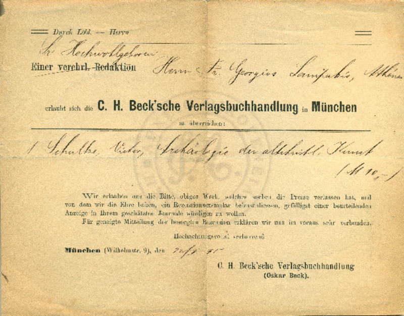 Ενημερώνει τον παραλήπτη ότι η διατριβή του έχει παραδοθεί στον καθηγητή Δρ. Häckel, ο οποίος μαζί με τον καθηγητή Δρ. Müller θα συντάξουν την αναφορά.