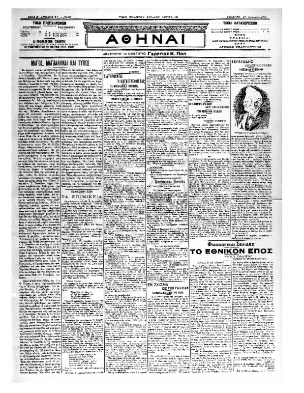 Άρθρο στην εφημερίδα Εστία με κοινοποιημένο γράμμα του Γάλλου Καθηγητή της Βυζαντινής Αρχαιολογίας στο Παρίσι G.Millet, για την απονομή μεταλλίου στον Γεώργιο Δ. Λαμπάκη για την έκδοση των δελτίων της Χριστιανικής Αρχαιολογίας (ΧΑΕ) και διοργάνωση…