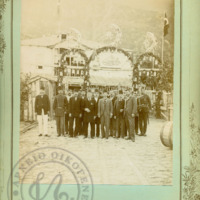 Ομαδική μικτού δημοτικού σχολείου. Στην φωτογραφία βρίσκεται ο Γεώργιος Λαμπάκης με την σύζυγό του Ευθαλία. (Τελευταία σειρά από το κέντρο λίγο πιο αριστερά)
