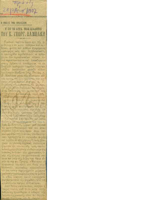 Αναφορά σε κακεντρεχή σχόλια για ομιλία του Γεωργίου τα οποία τον σταμάτησαν από νεωτερη διάλεξη. Κατόπιν όμως συζήτησης με την διεύθυνση του Ιερού Ναού Φασουλά πείσθηκε να δώσει εκ νέου διάλεξη.