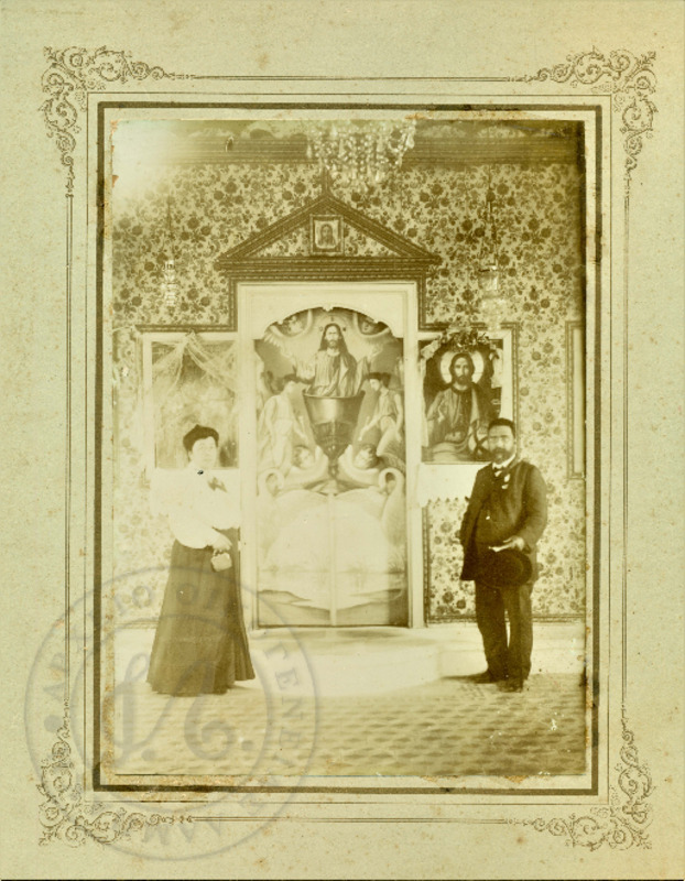 Γεώργιος και Ευθαλία Λαμπάκη σε εκκλησία σε κάποιο ταξίδι τους