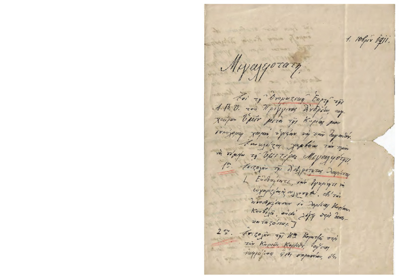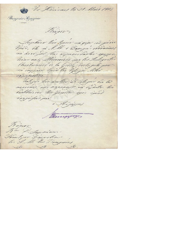 Ενημερωτική επιστολή εργασιών προς την Βασίλισσα Όλγα.