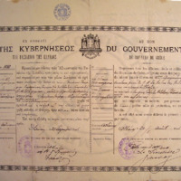 Ταξιδιωτικό έγγραφο για την διάβαση του Γεωργίου Λαμπάκη και της γυναίκας του Ευθαλίας για την επίσκεψή τους στην Κωνσταντινούπολη, Σμύρνη, Μυτιλήνη, Πάτμο και Μοσχονήσια