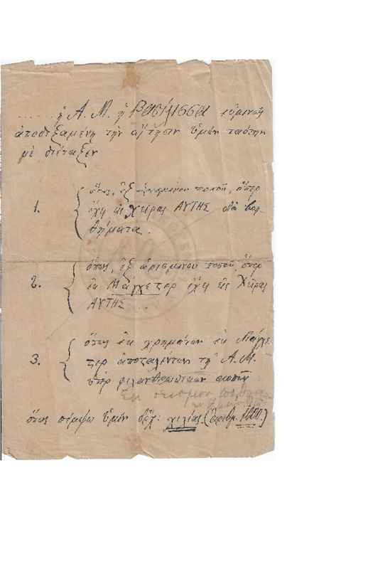 Ευχαριστήρια επιστολή προς την Βασίλισσα Όλγα για την φαρμακευτική και οικονομική βοήθεια που παρέχει κατά την διάρκεια ασθένειας της Αικατερίνης Πλυτά